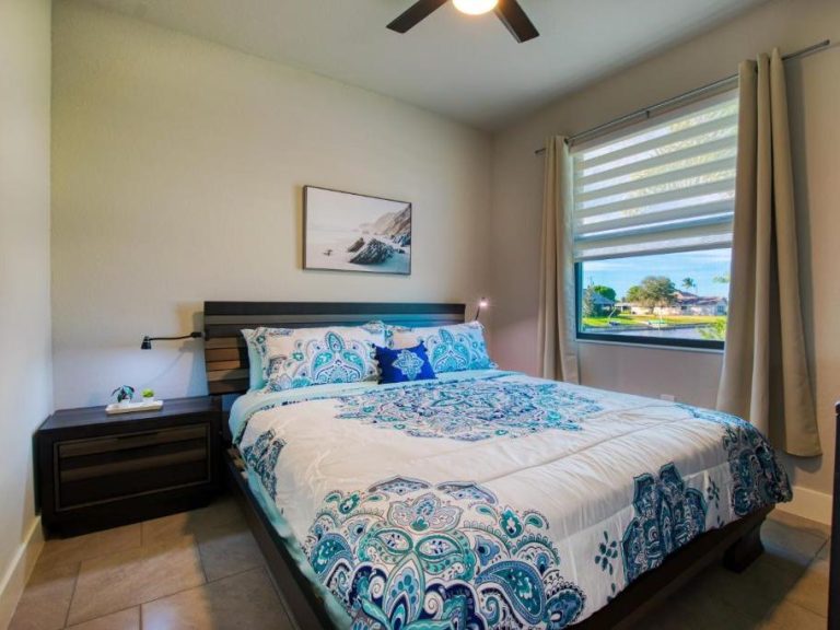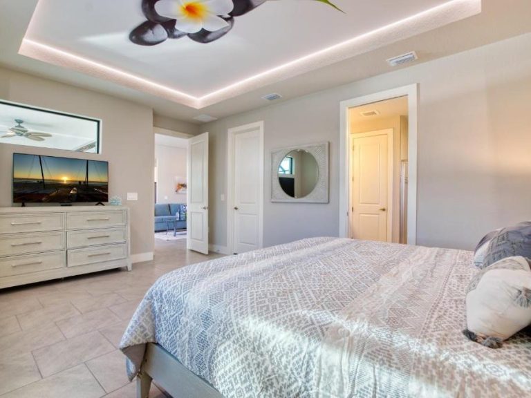 Ein großzügiges Schlafzimmer mit komfortablem Doppelbett und hochwertiger Matratze. Geräumige Schränke und sanfte Beleuchtung sorgen für angenehmen Komfort. Ideal für Eltern oder Paare, die Wert auf Ruhe und Privatsphäre legen.